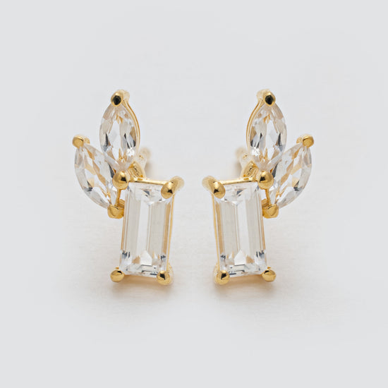 The perfect white topaz cluster studs to start your ear stack. A brilliant baguette white topaz nestled next to marquis clusters set in 18K gold vermeil. Perfect for a special occasion or every day wear. Get one for yourself and one for a gift!